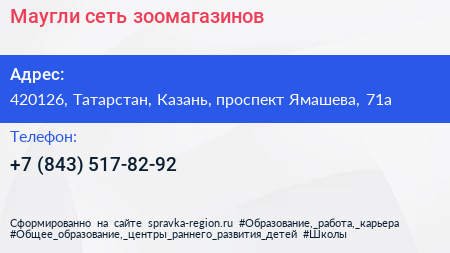 Маугли, сеть зоомагазинов по адресу 420126, Татарстан, Казань, проспект Ямашева, 71а в дальнейшем Организация, размещена в следующих категориях: