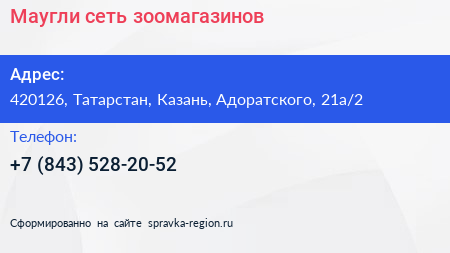 Маугли, сеть зоомагазинов по адресу 420126, Татарстан, Казань, Адоратского, 21а/2 в дальнейшем Организация, размещена в следующих категориях: