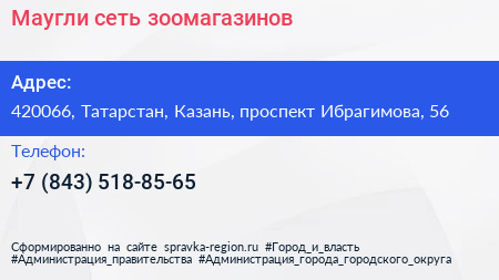 Маугли, сеть зоомагазинов по адресу 420066, Татарстан, Казань, проспект Ибрагимова, 56 в дальнейшем Организация, размещена в следующих категориях: