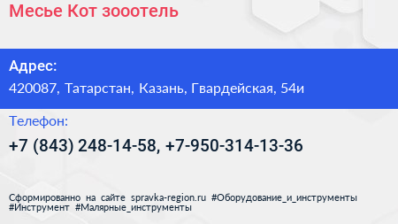 Месье Кот, зооотель по адресу 420087, Татарстан, Казань, Гвардейская, 54и в дальнейшем Организация, размещена в следующих категориях: