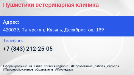 Пушистики, ветеринарная клиника по адресу 420039, Татарстан, Казань, Декабристов, 189 в дальнейшем Организация, размещена в следующих категориях: