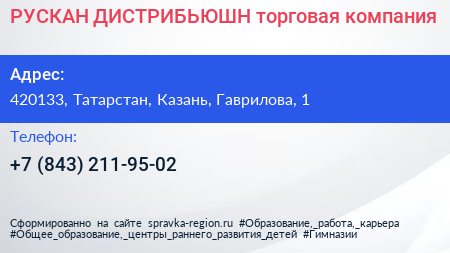 РУСКАН ДИСТРИБЬЮШН, торговая компания по адресу 420133, Татарстан, Казань, Гаврилова, 1 в дальнейшем Организация, размещена в следующих категориях: