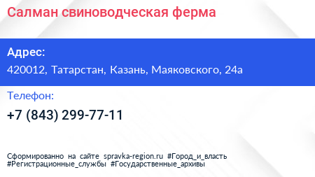 Салман, свиноводческая ферма по адресу 420012, Татарстан, Казань, Маяковского, 24а в дальнейшем Организация, размещена в следующих категориях: