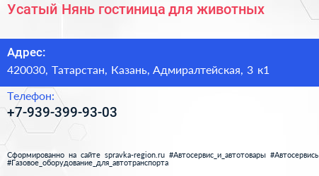 Усатый Нянь, гостиница для животных по адресу 420030, Татарстан, Казань, Адмиралтейская, 3 к1 в дальнейшем Организация, размещена в следующих категориях: