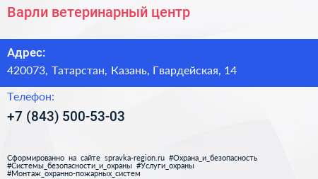 Варли, ветеринарный центр по адресу 420073, Татарстан, Казань, Гвардейская, 14 в дальнейшем Организация, размещена в следующих категориях: