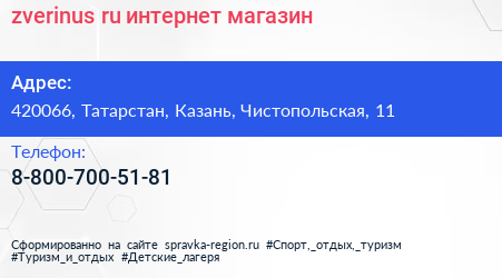 zverinus.ru, интернет-магазин по адресу 420066, Татарстан, Казань, Чистопольская, 11 в дальнейшем Организация, размещена в следующих категориях: