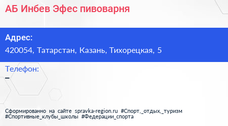АБ Инбев Эфес, пивоварня по адресу 420054, Татарстан, Казань, Тихорецкая, 5 в дальнейшем Организация, размещена в следующих категориях: