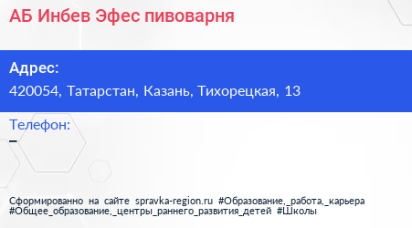 АБ Инбев Эфес, пивоварня по адресу 420054, Татарстан, Казань, Тихорецкая, 13 в дальнейшем Организация, размещена в следующих категориях: