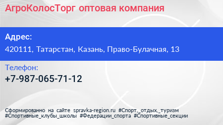 АгроКолосТорг, оптовая компания по адресу 420111, Татарстан, Казань, Право-Булачная, 13 в дальнейшем Организация, размещена в следующих категориях: