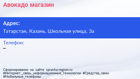 Авокадо, магазин по адресу Татарстан, Казань, Школьная улица, 3а в дальнейшем Организация, размещена в следующих категориях: