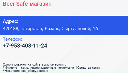 Beer Safe, магазин по адресу 420138, Татарстан, Казань, Сыртлановой, 16 в дальнейшем Организация, размещена в следующих категориях: