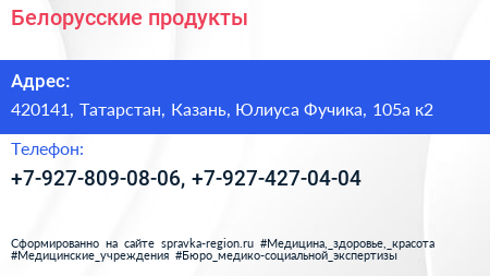 Белорусские продукты по адресу 420141, Татарстан, Казань, Юлиуса Фучика, 105а к2 в дальнейшем Организация, размещена в следующих категориях: