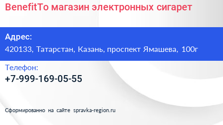 BenefitTo, магазин электронных сигарет по адресу 420133, Татарстан, Казань, проспект Ямашева, 100г в дальнейшем Организация, размещена в следующих категориях: