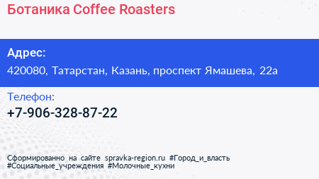 Ботаника Coffee Roasters по адресу 420080, Татарстан, Казань, проспект Ямашева, 22а в дальнейшем Организация, размещена в следующих категориях: