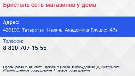 Бристоль, сеть магазинов у дома по адресу 420100, Татарстан, Казань, Академика Глушко, 47а в дальнейшем Организация, размещена в следующих категориях: