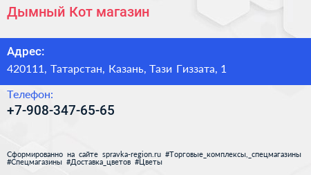 Дымный Кот, магазин по адресу 420111, Татарстан, Казань, Тази Гиззата, 1 в дальнейшем Организация, размещена в следующих категориях: