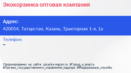 Экокорзинка, оптовая компания по адресу 420054, Татарстан, Казань, Тракторная 1-я, 1а в дальнейшем Организация, размещена в следующих категориях: