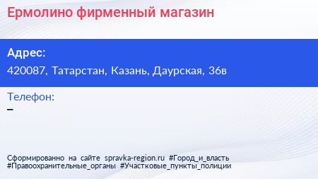 Ермолино, фирменный магазин по адресу 420087, Татарстан, Казань, Даурская, 36в в дальнейшем Организация, размещена в следующих категориях: