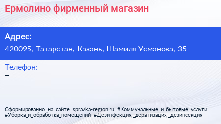 Ермолино, фирменный магазин по адресу 420095, Татарстан, Казань, Шамиля Усманова, 35 в дальнейшем Организация, размещена в следующих категориях: