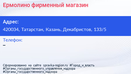 Ермолино, фирменный магазин по адресу 420034, Татарстан, Казань, Декабристов, 133/5 в дальнейшем Организация, размещена в следующих категориях: