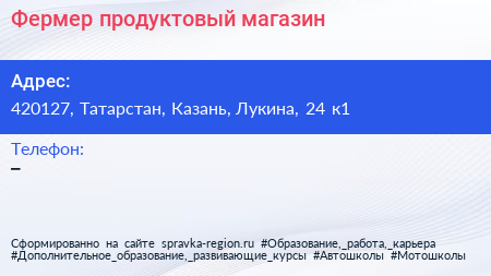 Фермер, продуктовый магазин по адресу 420127, Татарстан, Казань, Лукина, 24 к1 в дальнейшем Организация, размещена в следующих категориях: