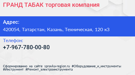 ГРАНД ТАБАК, торговая компания по адресу 420054, Татарстан, Казань, Техническая, 120 к3 в дальнейшем Организация, размещена в следующих категориях: