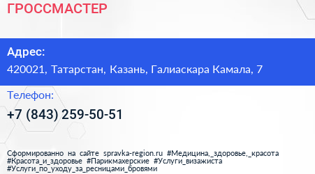 ГРОССМАСТЕР по адресу 420021, Татарстан, Казань, Галиаскара Камала, 7 в дальнейшем Организация, размещена в следующих категориях: