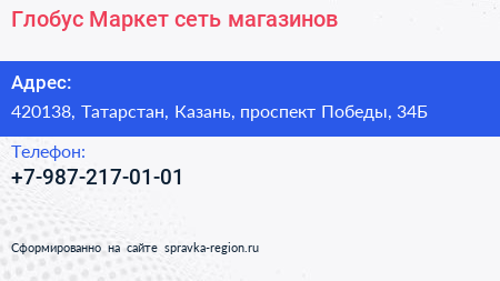 Глобус Маркет, сеть магазинов по адресу 420138, Татарстан, Казань, проспект Победы, 34Б в дальнейшем Организация, размещена в следующих категориях: