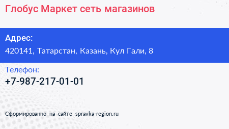 Глобус Маркет, сеть магазинов по адресу 420141, Татарстан, Казань, Кул Гали, 8 в дальнейшем Организация, размещена в следующих категориях: