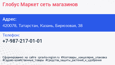 Глобус Маркет, сеть магазинов по адресу 420078, Татарстан, Казань, Бирюзовая, 38 в дальнейшем Организация, размещена в следующих категориях: