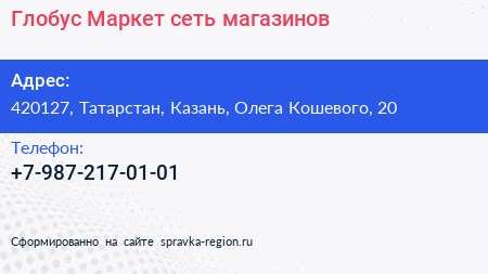 Глобус Маркет, сеть магазинов по адресу 420127, Татарстан, Казань, Олега Кошевого, 20 в дальнейшем Организация, размещена в следующих категориях: