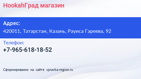 HookahГрад, магазин по адресу 420011, Татарстан, Казань, Рауиса Гареева, 92 в дальнейшем Организация, размещена в следующих категориях: