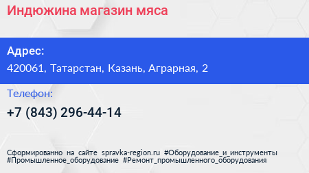 Индюжина, магазин мяса по адресу 420061, Татарстан, Казань, Аграрная, 2 в дальнейшем Организация, размещена в следующих категориях: