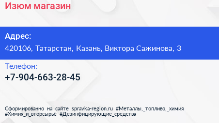 Изюм, магазин по адресу 420106, Татарстан, Казань, Виктора Сажинова, 3 в дальнейшем Организация, размещена в следующих категориях: