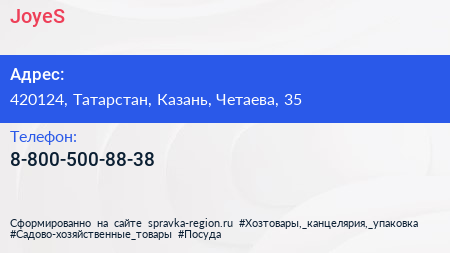 JoyeS по адресу 420124, Татарстан, Казань, Четаева, 35 в дальнейшем Организация, размещена в следующих категориях: