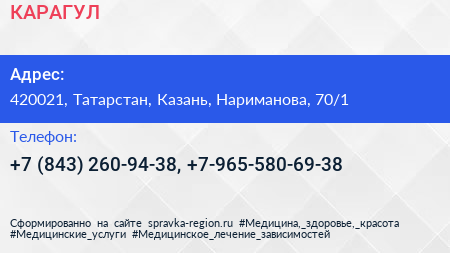 КАРАГУЛ по адресу 420021, Татарстан, Казань, Нариманова, 70/1 в дальнейшем Организация, размещена в следующих категориях: