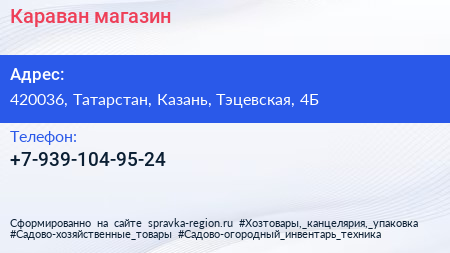 Караван, магазин по адресу 420036, Татарстан, Казань, Тэцевская, 4Б в дальнейшем Организация, размещена в следующих категориях:
