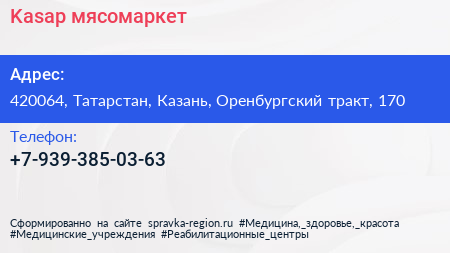 Kasap, мясомаркет по адресу 420064, Татарстан, Казань, Оренбургский тракт, 170 в дальнейшем Организация, размещена в следующих категориях: