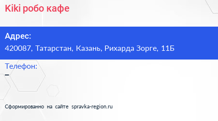 Kiki, робо-кафе по адресу 420087, Татарстан, Казань, Рихарда Зорге, 11Б в дальнейшем Организация, размещена в следующих категориях: