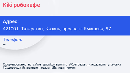 Kiki, робокафе по адресу 421001, Татарстан, Казань, проспект Ямашева, 97 в дальнейшем Организация, размещена в следующих категориях: