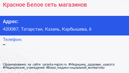 Красное & Белое, сеть магазинов по адресу 420087, Татарстан, Казань, Карбышева, 6 в дальнейшем Организация, размещена в следующих категориях:
