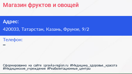 Магазин фруктов и овощей по адресу 420033, Татарстан, Казань, Фрунзе, 9/2 в дальнейшем Организация, размещена в следующих категориях: