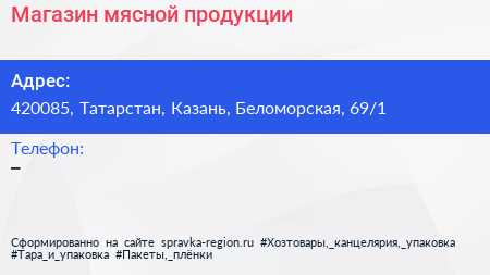 Магазин мясной продукции по адресу 420085, Татарстан, Казань, Беломорская, 69/1 в дальнейшем Организация, размещена в следующих категориях: