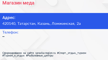Магазин меда по адресу 420140, Татарстан, Казань, Ломжинская, 2а в дальнейшем Организация, размещена в следующих категориях: