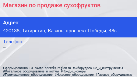Магазин по продаже сухофруктов по адресу 420138, Татарстан, Казань, проспект Победы, 48в в дальнейшем Организация, размещена в следующих категориях: