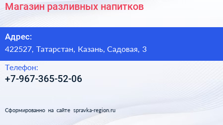 Магазин разливных напитков по адресу 422527, Татарстан, Казань, Садовая, 3 в дальнейшем Организация, размещена в следующих категориях: