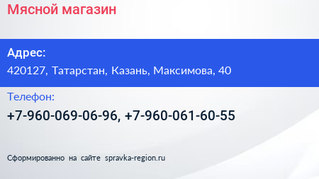 Мясной, магазин по адресу 420127, Татарстан, Казань, Максимова, 40 в дальнейшем Организация, размещена в следующих категориях: