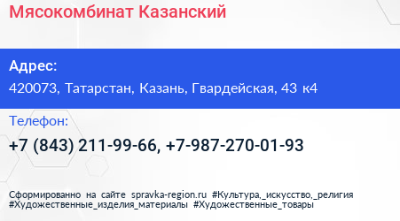 Мясокомбинат Казанский по адресу 420073, Татарстан, Казань, Гвардейская, 43 к4 в дальнейшем Организация, размещена в следующих категориях: