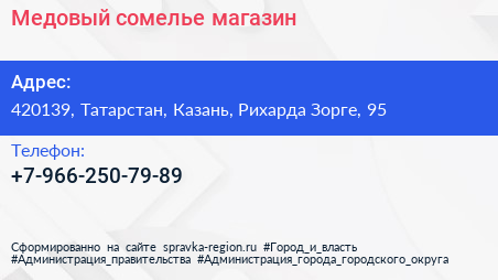 Медовый сомелье, магазин по адресу 420139, Татарстан, Казань, Рихарда Зорге, 95 в дальнейшем Организация, размещена в следующих категориях:
