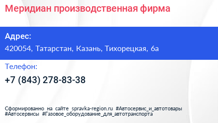 Меридиан, производственная фирма по адресу 420054, Татарстан, Казань, Тихорецкая, 6а в дальнейшем Организация, размещена в следующих категориях: